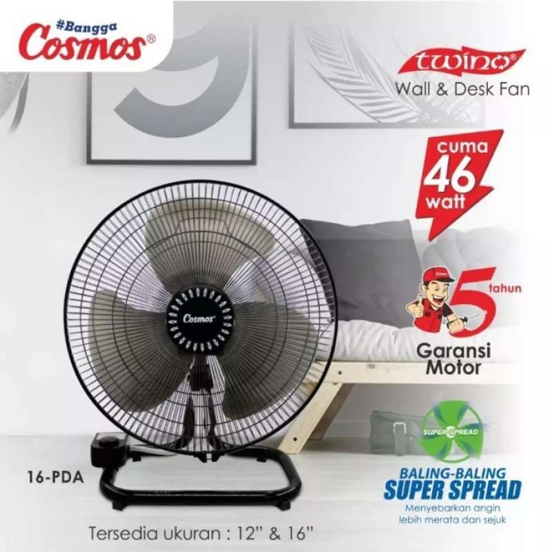 Kipas Angin Twino dengan 2 fungsi peletakkan (Wall & Desk) , dengan bilah kipas berukuran 16 inch. Memiliki 3 level kecepatan pada Switch Box. Desain tombol model putar (Rotary Model Switch). Blade dirancang untuk menghasilkan angin sejuk yang lebih melebar dan merata ke seluruh ruangan.