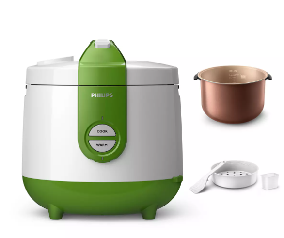 PHILIPS Rice Cooker HD3119 merupakan rice cooker yang hadir dengan desain ergonomis yang dapat membantu Anda untuk menyajikan nasi dengan kematangan sempurna berkat material berkualitas yang dimiliki. Produk ini memiliki logam paduan ekstra tebal yang mampu menyebarkan panas secara merata dan memastikan setiap bulir nasi mendidih dan matang sempurna. Pelapis kristal super keras pada produk ini juga mampu menghasilkan panci yang anti-lengket dan anti-gores sehingga lebih tahan lama dan mudah dibersihkan.