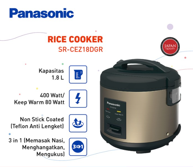 Produk : https://www.tokopedia.com/cvlgi/panasonic-rice-cooker-sr-cez18dgr-1-8-liter-wa-081325157177?extParam=whid%3D2837733