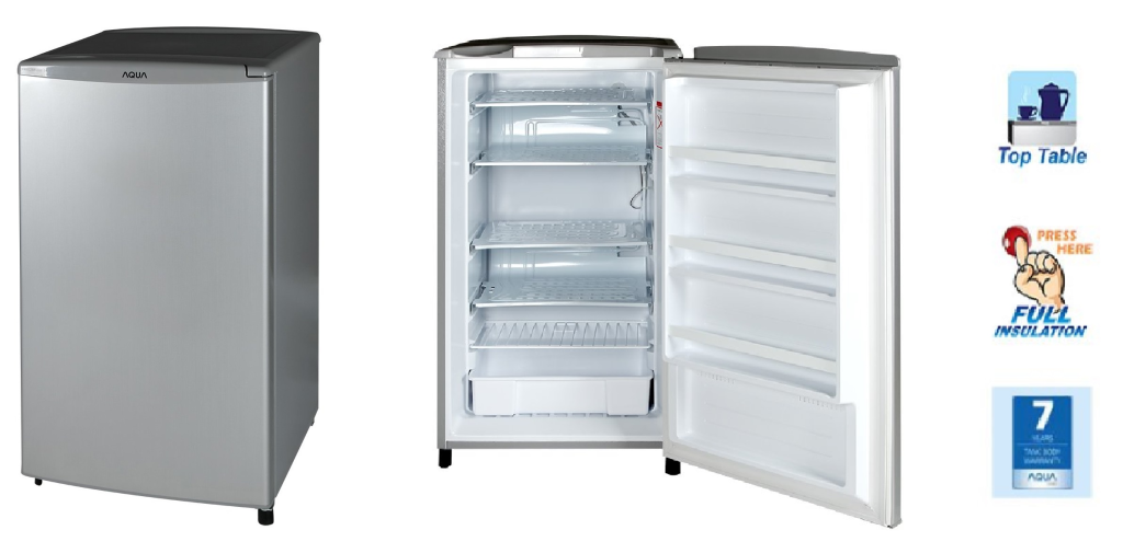 AQUA FreezerAQF-S4 hadir dengan desain elegan dan kecanggihan teknologi serta kualitas. Kulkas ini memiliki 4 buah rak susun dengan kapasitas hingga sebesar 169L. Kulkas ini menawarkan full insulation yang mana berguna untuk mempercepat proses pendinginan di dalam kulkas dan lebih hemat energi. Bagian atas kulkas yang datar dapat berfungsi sebagai meja sementara yang dapat digunakan untuk meletakkan vas bunga ataupun gelas.